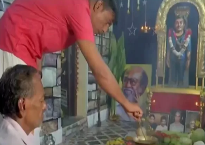 ಅದೇ ರೀತಿ ತಮಿಳು ನಾಡಿನ ರಜನಿ ಅಭಿಮಾನಿಯೊಬ್ಬ, ತಮ್ಮ ಮನೆಯಲ್ಲಿ ಪ್ರತಿಷ್ಠಾಪಿಸಿರುವ ರಜನಿಕಾಂತ್ ವಿಗ್ರಹಕ್ಕೆ ಪೂಜೆ ಸಲ್ಲಿಸಿ, ಸಂಕ್ರಾಂತಿ ಹಬ್ಬವನ್ನು ಸೆಲೆಬ್ರೇಟ್ ಮಾಡಿದ್ದಾನೆ. ತಮಿಳುನಾಡಿದ ಮಧುರೈನ ಕಾರ್ತಿಕ್ ಎಂಬ ಅಭಿಮಾನಿ, ಮನೆಯಲ್ಲೇ ರಜನಿಗಾಗಿ ಪುಟ್ಟ ದೇವಸ್ಥಾನ ನಿರ್ಮಿಸಿ, ಅದರಲ್ಲಿ ಶೇಷನ ನೆರಳಿನಲ್ಲಿ ರಜನಿ ಇರುವಂತೆ ವಿಗ್ರಹವನ್ನು ಪ್ರತಿಷ್ಠಾಪಿಸಲಾಗಿದೆ. ತಲೈವಾ ವಿಗ್ರಹಕ್ಕೆ,ಅರಿಶಿನ, ಹಾಲಿನ ಅಭಿಷೇಕ ಮಾಡಿ, ಹೂವು ಹಾಕಿ, ಹಣ್ಣು ನೈವೇದ್ಯ ಮಾಡಿ, ಪೂಜೆ ಸಲ್ಲಿಸಲಾಗಿದೆ.