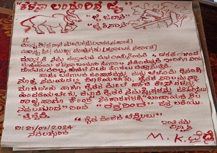 Dharwad News: ಧಾರವಾಡ: ಮಹಾದಾಯಿ ಹೋರಾಟ ಹಲವು ವರ್ಷಗಳಿಂದ ನಡೆಯುತ್ತಿದ್ದರೂ, ಇದುವರೆಗೆ ಆ ಹೋರಾಟಕ್ಕೆ ನ್ಯಾಯ ದೊರಕಿಲ್ಲ. ಹಾಾಗಾಗಿ ಕೇಂದ್ರ ಮತ್ತು ರಾಜ್ಯ ಸರ್ಕಾರಕ್ಕೆ ಧಾರವಾಡ ಜಿಲ್ಲೆ ನವಲಗುಂದದ ರೈತನೋರ್ವ ರಕ್ತದಲ್ಲಿ ಪತ್ರ ಬರೆದಿದ್ದಾರೆ.