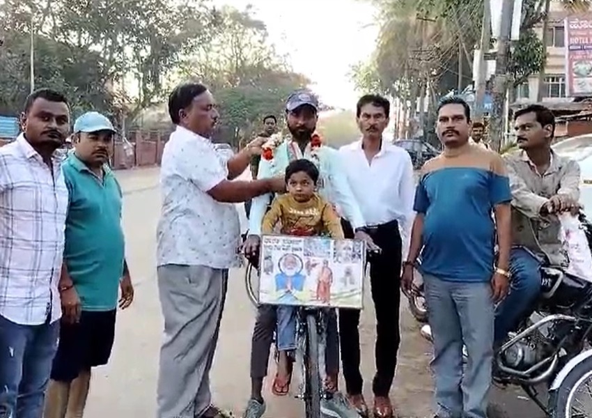 ದೇಶ ಉಳಿಸಲು ಬಿಜೆಪಿ ಗೆ ಮತ ನೀಡಿ ಎಂದು ಭರತ್ ಜೈನ್ ಎಂಬ ಯುವಕ ಸೈಕಲ್ ಸವಾರಿ ಶುರು ಮಾಡಿದ್ದಾನೆ. ಹುಬ್ಬಳ್ಳಿ ತಾಲೂಕಿನ ಮಂಟೂರು ಗ್ರಾಮದ ಭರತ್, ಧಾರವಾಡ ಜಿಲ್ಲೆಯಿಂದ ಯಾತ್ರೆ ಕೈಗೊಂಡು, ಸೈಕಲ್ನಲ್ಲಿಯೇ, ಇಡೀ ರಾಜ್ಯದ ಬೇರೆ ಬೇರೆ ಜಿಲ್ಲೆಗಳಿಗೆ ಹೋಗಿ, ಮೋದಿ ದೇಶಕ್ಕಾಗಿ ಮಾಡಿದ ಕಾರ್ಯದ ಬಗ್ಗೆ ವಿವರಿಸಿ, ಅವರನ್ನು ಗೆಲ್ಲಿಸುವಂತೆ ಸಂದೇಶ ನೀಡಲಿದ್ದಾರೆ.