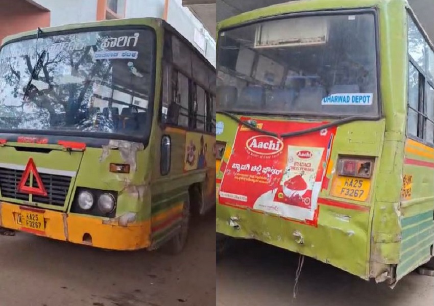 ಹೌದು.. ಧಾರವಾಡ ಹಳೇ ಬಸ್ ನಿಲ್ದಾಣದಲ್ಲಿ ಈ ಘಡನೆ ಸಂಭವಿಸಿದ್ದು, ಅದೃಷ್ಟವಶಾತ್ ಯಾವುದೇ ಪ್ರಾಣ ಹಸನಿ ಸಂಭವಿಸಿಲ್ಲ. ಇನ್ನೂ ಅಪಘಾತಗೊಂಡ ಎರಡು ಬಸ್‌ಗಳು ಹಿಂದೆ ಮುಂದೆ ಬೇರೆ ಊರುಗಳಿಗೆ ತೆರಳಲು ನಿಲ್ದಾಣದಲ್ಲಿ ನಿಲ್ಲಿಸಲಾಗಿತ್ತು. ಆದರೆ ಮುಂದೆ ನಿಂತಿದ್ದ ಸಾರಿಗೆ ಬಸ್ ಬ್ರೆಕ್ ಪೇಲ್ ಆದ ಕಾರ ಉರುಳಿ ಬಂದು ಹಿಂಬದಿಯ ಬಸ್‌ಗೆ ಡಿಕ್ಕಿಯಾಗಿದೆ. ಇದರಿಂದಾಗಿ ಎರಡು ಬಸಗಳಿಗೆ ಹಾನಿಯಾಗಿದೆ.