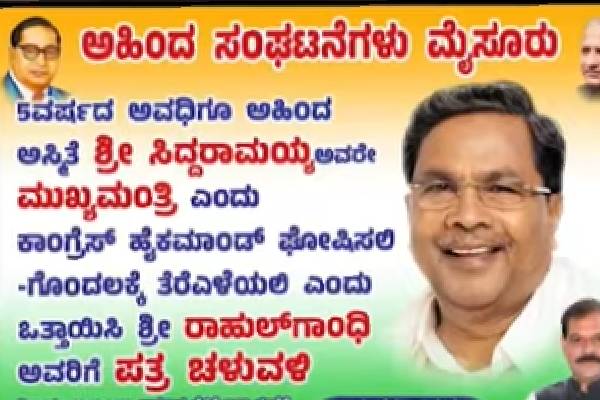 ಮುಖ್ಯಮಂತ್ರಿ ಸಿದ್ದರಾಮಯ್ಯ ಬೆನ್ನಿಗೆ ಅಹಿಂದ ಸಂಘಟನೆಗಳು ನಿಂತಿದ್ದು, ಪತ್ರ ಚಳವಳಿಯನ್ನು ಆರಂಭಿಸಿವೆ. 5 ವರ್ಷ ಸಿದ್ದರಾಮಯ್ಯನವರೇ ಸಿಎಂ ಎಂದು, ದಲಿತ ಸಂಘಟನೆಗಳು ಪತ್ರ ಚಳವಳಿ ಆರಂಭಿಸಿದ್ದಾರೆ.