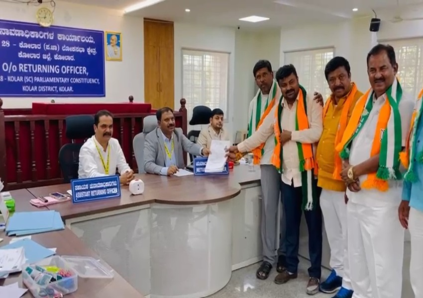 ಕೋಲಾರದಲ್ಲಿ ಮೈತ್ರಿ ಅಭ್ಯರ್ಥಿ ಎಂ.ಮಲ್ಲೇಶ್ ಬಾಬು ಅಧಿಕೃತವಾಗಿ ನಾಮಪತ್ರ ಸಲ್ಲಿಕೆ