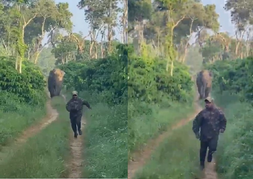 ಈ ವೀಡಯೋ ಕಾಡಲ್ಲೇ ಇದ್ದ ಕ್ಯಾಮೆರಾದಲ್ಲಿ ಸೆರೆಯಾಗಿದ್ದು, ಓಡಿ ಹೋದ ಸಿಬ್ಬಂದಿ, ಒಂಟಿಸಲಗದಿಂದ ತಪ್ಪಿಸಿಕೊಂಡು, ಕೂದಲೆಳೆ ಅಂತರದಿಂದ ಪಾರಾಗಿ ಜೀವ ಉಳಿಸಿಕೊಂಡಿದ್ದಾನೆ.