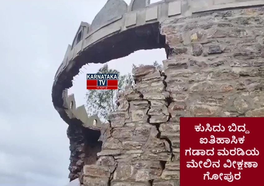 Belagavi News: ಚನ್ನಮ್ಮನ ಕಿತ್ತೂರು : ಕಳೆದ ಒಂದು ವಾರದಿಂದ ಸುರಿಯುತ್ತಿರುವ ಧಾರಾಕಾರ ಮಳೆಯಿಂದ ಕಿತ್ತೂರು ಸಂಸ್ಥಾನಕ್ಕೆ ಸೇರಿದ್ದ ಐತಿಹಾಸಿಕ ಗಡಾದ ಮರಡಿಯ ಮೇಲಿನ ವೀಕ್ಷಣಾ ಗೋಪುರ ಕುಸಿದು ಬಿದ್ದಿದೆ.