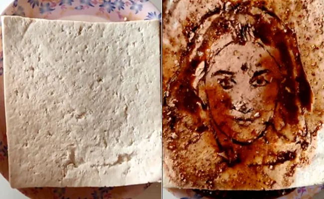 ನಾವು ಭಾರತದಲ್ಲಿ ಹಲವು ಆರ್ಟಿಸ್ಟ್ಗಳನ್ನ ನೋಡಿದ್ದೇವೆ. ಸಮುದ್ರ ದಡದಲ್ಲಿ ಸಿಗುವ ಹೊಯ್ಗೆಯಿಂದ ಕಲಾಕೃತಿಯನ್ನ ಬಿಡಿಸುತ್ತಾರೆ. ದಾರ, ಚಮಚವನ್ನ ಸೇರಿಸಿ, ಚಿತ್ರವನ್ನ ಬಿಡಿಸುತ್ತಾರೆ. ಹೀಗೆ ಚಿತ್ರ ವಿಚಿತ್ರವಾಗಿ ಚಿತ್ರ ಬಿಡಿಸುವ, ಕಲಾಕೃತಿ ರಚಿಸುವ ಆರ್ಟಿಸ್ಟ್ಗಳ ಮಧ್ಯೆ, ಕಲಾಕಾರನೋರ್ವ, ಪನೀರ್ನ್ನ ಶೀಟ್ ಆಗಿ ಬಳಸಿ, ಸೋಯಾಸಾಸ್ನ ಪೇಂಟ್ ರೀತಿ ಬಳಸಿ, ಆಲಿಯಾ ಬಟ್ರ ಗಂಗೂಬಾಯಿ ಖಾತಿಯಾವಾಡಿ ಲುಕ್ ಬಿಡಿಸಿ, ನೆಟ್ಟಿಗರ ಮನ ಗೆದ್ದಿದ್ದಾನೆ. ಈಗ ಈ ಚಿತ್ರ ಸಾಮಾಜಿಕ ಜಾಲತಾಣದಲ್ಲಿ ಸಖತ್ ವೈರಲ್ ಆಗಿದೆ.