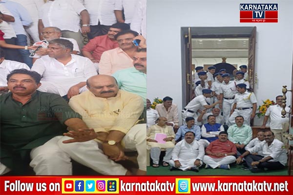 ಈ ಕಾರಣದಿಂದ ಬಿಜೆಪಿ ಸದಸ್ಯರನ್ನು ಸದನದಿಂದ ಅಮಾನತು ಮಾಡಿರುವುದನ್ನು ಖಂಡಿಸಿ ಮಾಜಿ ಮುಖ್ಯಮಂತ್ರಿ ಬಸವರಾಜ ಬೊಮ್ಮಾಯಿ ನೇತೃತ್ವದಲ್ಲಿ ವಿಧಾನಸಭೆಯ ಸ್ಪೀಕರ್ ಕಚೇರಿ ಎದುರು ಬಿಜೆಪಿ ಸದಸ್ಯರು ಪ್ರತಿಭಟನೆ ನಡೆಸಿದರು.