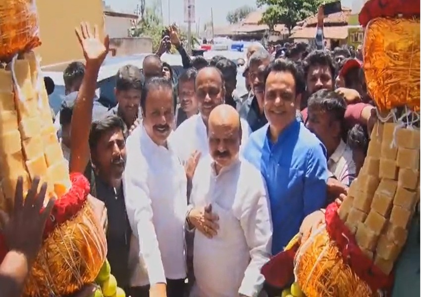 Mandya News: ಮಂಡ್ಯದ ಎಲೆಚಾಕನಹಳ್ಳಿ ಗ್ರಾಮದಲ್ಲಿ ಮಾಜಿ ಸಿಎಂ ಬಸವರಾಜ ಬೊಮ್ಮಾಯಿಗೆ ಗ್ರಾಮಸ್ಥರು ಬೆಲ್ಲದ ಹಾರ ಹಾಕಿ ಸ್ವಾಗತ ಕೋರಿದ್ದಾರೆ.