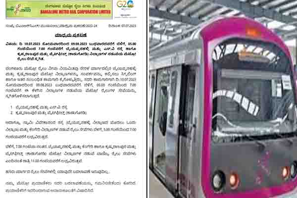 ಜುಲೈ 10 ರಿಂದ ಆಗಸ್ಟ್ 09ರ ವರೆಗೆ ಬೈಯಪ್ಪನಹಳ್ಳಿ ಹಾಗೂ ಕೃಷ್ಣರಾಜಪುರಂ ನಿಲ್ದಾಣಗಳನ್ನು ಸಂಪರ್ಕಿಸುವ ಸಿಗ್ನಲಿಂಗ್ ಹಾಗೂ ಇತರ ಕಾಮಗಾರಿಗಳನ್ನು ಶುರು ಮಾಡಲಿರುವ ಕಾರಣ ಒಂದು ತಿಂಗಳ ವರೆಗೆ ಪ್ರತಿದಿನ ಬೆಳಗ್ಗೆ 5 ರಿಂದ 7 ಗಂಟೆವರೆಗೆ ಅಂದರೆ ಬೆಳಿಗ್ಗೆ ಸಮಯದಲ್ಲಿ 2 ತಾಸು ಮೆಟ್ರೋ ಸಂಚಾರವನ್ನು ಸಿಲ್ಲಿಸಲಾಗುವುದು.