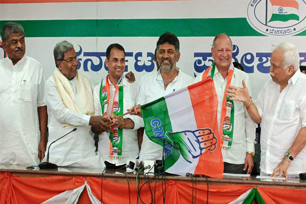 ಕ್ವೀನ್ಸ್ ರಸ್ತೆಯ ಕೆಪಿಸಿಸಿ ಕಚೇರಿಯಲ್ಲಿ ಪಕ್ಷದ ರಾಜ್ಯಾಧ್ಯಕ್ಷ ಡಿ.ಕೆ. ಶಿವಕುಮಾರ್, ಶಾಸಕಾಂಗ ಪಕ್ಷದ ನಾಯಕ ಸಿದ್ದರಾಮಯ್ಯ, ವಿಧಾನ ಪರಿಷತ್ ವಿರೋಧ ಪಕ್ಷದ ನಾಯಕ ಬಿ.ಕೆ. ಹರಿಪ್ರಸಾದ್, ಕೆಪಿಸಿಸಿ ಕಾರ್ಯಾಧ್ಯಕ್ಷ ಸಲೀಂ ಅಹ್ಮದ್ ಹಾಗೂ ಹಿರಿಯ ಮುಖಂಡ ಆರ್.ವಿ. ದೇಶಪಾಂಡೆ ಅವರು ಪಕ್ಷದ ಧ್ವಜ ನೀಡುವ ಮೂಲಕ ವಿ.ಎಸ್. ಪಾಟೀಲ್ ಹಾಗೂ ಶ್ರೀನಿವಾಸ್ ಭಟ್ ದಾತ್ರಿ ಅವರನ್ನು ಪಕ್ಷಕ್ಕೆ ಸೇರ್ಪಡೆ ಮಾಡಿಕೊಂಡರು.