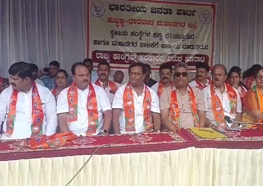 ಹುಬ್ಬಳ್ಳಿ ಧಾರವಾಡ ಮಹಾನಗರ ಬಿಜೆಪಿ ಜಿಲ್ಲಾ ಘಟಕದ ನೇತೃತ್ವದಲ್ಲಿ ನಗರದ ಮಿನಿ ವಿಧಾನ ಸೌಧದ ಮುಂಭಾಗದಲ್ಲಿ ಮುಂಜಾನೆ 10 ಗಂಟೆಯಿಂದ ಮಧ್ಯಾಹ್ನ ಎರಡು ಗಟೆಯವರೆಗೆ ಪ್ರತಿಭಟನೆ ನಡೆಸಿದ ಬಿಜೆಪಿ ಪಾಲಿಕೆ ಸದಸ್ಯರು ಹಾಗೂ ಬಿಜೆಪಿ ಜಿಲ್ಲಾ ಘಟಕ ಪದಾಧಿಕಾರಿಗಳು ರಾಜ್ಯ ಸರ್ಕಾರದ ವಿರುದ್ಧ ಧಿಕ್ಕಾರ ಕೂಗಿ ತಮ್ಮ ಆಕ್ರೋಶ ವ್ಯಕ್ತಪಡಿಸಿದರು.