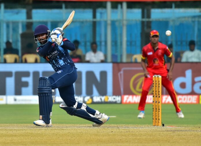 ಶಿವಕುಮಾರ್ ರಕ್ಷಿತ್ (34 ರನ್) ಹಾಗೂ ಅನಿರುದ್ಧ ಜೋಶಿ ಜವಾಬ್ದಾರಿಯುತವಾಗಿ ಬ್ಯಾಟಿಂಗ್ ಮಾಡಿದರು. ಅನಿರುದ್ಧ ಜೋಶಿ 24 ಎಸೆತದಲ್ಲಿ 7 ಬೌಂಡರಿ 3 ಸಿಕ್ಸರ್ ಸಿಡಿಸಿ ಅಜೇಯ 57 ರನ್ ಕಲೆ ಹಾಕಿದರು.