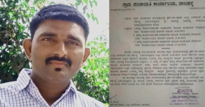 ರಾಯಚೂರು ಜಿಲ್ಲೆಯ ದೇವದುರ್ಗ ತಾಲೂಕಿನ ಜಾಲಹಳ್ಳಿ ಗ್ರಾಮ ಪಂಚಾಯತ್ನಲ್ಲಿ ರಾಯಪ್ಪ ಎಂಬುವರು ಕ್ಲರ್ಕ್ ಕಂ ಡಾಟಾ ಎಂಟ್ರಿ ಆಪರೇಟರ್ ಆಗಿ ಕಾರ್ಯನಿರ್ವಹಿಸುತ್ತಿದ್ದರು. ರಾಯಪ್ಪ ಸರ್ಕಾರದ ವಿರುದ್ಧ ಸ್ಟೇಟಸ್ ಹಾಕಿದ್ದರ ಹಿನ್ನೆಲೆ ದೇವದುರ್ಗ ತಾಲೂಕು ಪಂಚಾಯತ್ ಕಾರ್ಯನಿರ್ವಹಣಾಧಿಕಾರಿ ಕಾರಣ ಕೇಳಿ ನೋಟಿಸ್ ನೀಡಿದ್ದರು. ಇದಕ್ಕೆ ಉತ್ತರ ನೀಡದ ಕಾರಣ ಕ್ಲರ್ಕ್ ರಾಯಪ್ಪನನ್ನು ಅಮಾನತು ಮಾಡಲಾಗಿದೆ.
