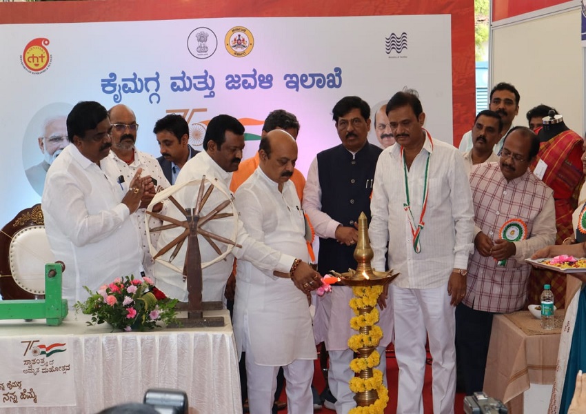 ಬೆಂಗಳೂರು: ಕೈಮಗ್ಗ ಮತ್ತು ಜವಳಿ ಇಲಾಖೆಯು ಸ್ವಾತಂತ್ರ್ಯದ ಅಮೃತ ಮಹೋತ್ಸವ ಹಾಗೂ 8ನೇ ರಾಷ್ಟ್ರೀಯ ಕೈಮಗ್ಗ ದಿನಾಚರಣೆಯ ಅಂಗವಾಗಿ ಇಲ್ಲಿನ ಕರ್ನಾಟಕ ಚಿತ್ರಕಲಾ ಪರಿಷತ್ ನಲ್ಲಿ ಆಯೋಜಿಸಿರುವ ಮೂರು ದಿನಗಳ ‘ಕೈಮಗ್ಗ ಉತ್ಪನ್ನಗಳ ಪ್ರದರ್ಶನ ಮತ್ತು ಮಾರಾಟ ಮೇಳವನ್ನು ಮಾನ್ಯ ಮುಖ್ಯಮಂತ್ರಿ ಬಸವರಾಜ ಬೊಮ್ಮಾಯಿ ಅವರು ಇಂದು ಉದ್ಘಾಟಿಸಿದರು.
