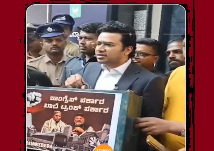 ನಮ್ಮ ರಾಜ್ಯದ ಬೊಕ್ಕಸವನ್ನು ಕಾಂಗ್ರೆಸ್ ಖಾಲಿ ಮಾಡಿದ್ದು ,ಈಗ ಅದು ಖಾಲಿ ಟ್ರಂಕ್ ನಂತಾಗಿದೆ: ತೇಜಸ್ವಿ ಸೂರ್ಯ
