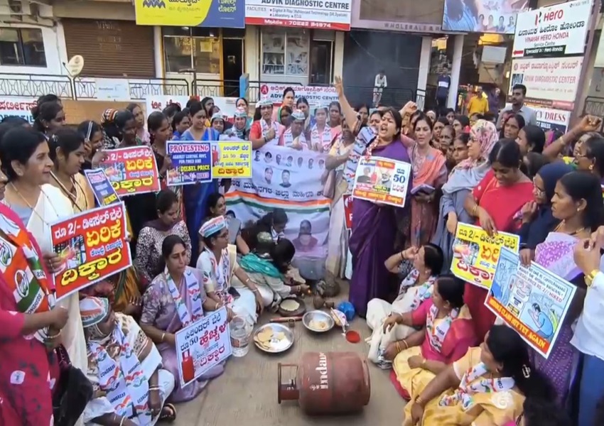 Hubli News: ಹುಬ್ಬಳ್ಳಿ: ಕೇಂದ್ರ ಸರ್ಕಾರ ಡಿಸೇಲ್ ಮತ್ತು ಗ್ಯಾಸ್ ಸಿಲಿಂಡರ್ ಬೆಲೆ ಏರಿಕೆ ಮಾಡಿದ್ದು, ಇದನ್ನು ಖಂಡಿಸಿ, ಕಾಂಗ್ರೆಸ್ ವಿನೂತನ ಪ್ರತಿಭಟನೆ ನಡೆಸಿದೆ.