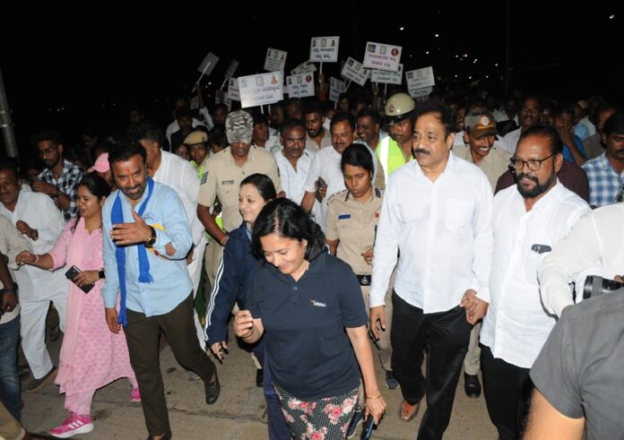 Hubli News: ಹುಬ್ಬಳ್ಳಿ : ಇಂದು ಉಣಕಲ್ ಕೆರೆ ಮುಂಭಾಗದಲ್ಲಿ ಹುಬ್ಬಳ್ಳಿ-ಧಾರವಾಡ ಮಹಾನಗರ ಪಾಲಿಕೆ ಹಾಗೂ ಜಿಲ್ಲಾಡಳಿತ ಇವುಗಳ ಸಹಯೋಗದಲ್ಲಿ ಸಂವಿಧಾನ ಜಾಗೃತಿ ಜಾಥಾ ಅಂಗವಾಗಿ ಆಯೋಜಿಸಲಾಗಿದ್ದ ಪಂಜಿನ ಮೆರವಣಿಗೆಗೆ ಕಾರ್ಮಿಕ ಹಾಗೂ ಜಿಲ್ಲಾ ಉಸ್ತುವಾರಿ ಸಚಿವರಾದ ಸಂತೋಷ್ ಲಾಡ್ ಅವರು ಚಾಲನೆ ನೀಡಿದರು.