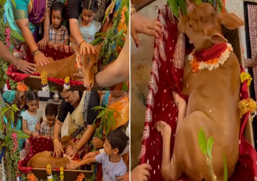 ಅರೇ ಇದೇನಪ್ಪಾ ತೊಟ್ಟಿಲಿಗೆ ಮಗುವನ್ನು ಹಾಕಿ, ನಾಮಕರಣ ಮಾಡೋದು 1 ನ್ಯೂಸಾ ಅಂತಾ ನೀವು ಕೇಳ್ಬಹುದು. ಆದ್ರೆ ಇಲ್ಲಿ ವಿಶೇಷ ಏನಪ್ಪಾ ಅಂದ್ರೆ, ಆ ಮಗು ಸಾಮಾನ್ಯವಾಗಿರುವ ಮಗು ಅಲ್ಲಾ, ಪುಟ್ಟ ಕರು. ಹೌದು, ಕರುವಿನ ನಾಮಕರಣ ಸಮಾರಂಭವನ್ನೇ ಇಷ್ಟು ಚೆಂದದಲ್ಲಿ ಮಾಡಲಾಗಿದೆ.