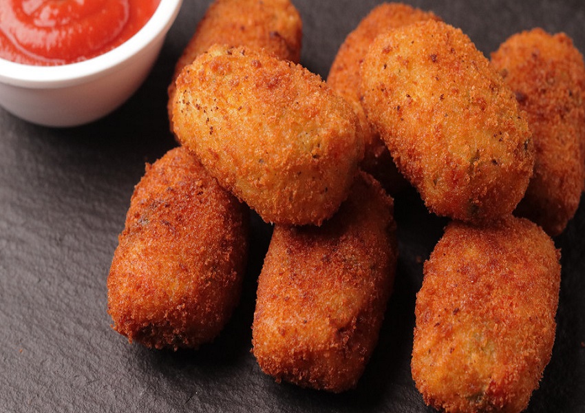 ಈಗ ನಗ್ಗೇಟ್ಸನ್ನ ಈ ಬ್ಯಾಟರ್‌ನಲ್ಲಿ ಅದ್ದಿ, ಉಳಿದ ಬ್ರೆಡ್ ಕ್ರಂಬ್ಸ್ ಅಥವಾ ಅವಲಕ್ಕಿ ಪುಡಿಯಲ್ಲಿ ಮಿಕ್ಸ್ ಮಾಡಿ, ಮಂದ ಉರಿಯಲ್ಲಿ ಬಿಸಿಯಾದ ಎಣ್ಣೆಯಲ್ಲಿ ಈ ನಗ್ಗೇಟ್ಸ್ ಕರಿಯಬೇಕು. ಗೋಲ್ಡನ್ ಬ್ರೌನ್ ಆದ ಮೇಲೆ ನಗ್ಗೇಟ್ಸ್ ರೆಡಿ. ಇದನ್ನು ಟೋಮೆಟೋ ಸಾಸ್ ಜೊತೆ ಸವಿಯಬಹುದು.