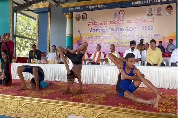 ವೇದಿಕೆ ಆರಂಭದಲ್ಲಿ ನಾಲ್ಕು ಯೋಗಾಪಟುಗಳು ಯೋಗಾಪ್ರದರ್ಶನ ಮಾಡಿದರು.
