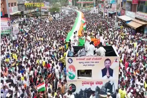 ಕಲಘಟ್ಟಕಿಯಲ್ಲಿ 9 ಮೀ ಉದ್ದದ ತಿರಂಗ ಧ್ವಜ ದ ಮೆರವಣಿಗೆಯನ್ನು ಮಾಡಲಾಗಿದೆ.ಸಂತೋಷ್ ಲಾಡ್ ಫೌಂಡೇಶನ್ ವತಿಯಿಂದ ಈ ಕಾರ್ಯಕ್ರಮ ನಡೆಯಿತು.ಕಲಘಟಕಿಯ ದಾಸ್ತಿಕೊಪ್ಪದಿಂದ ದೇವಿ ಕೊಪ್ಪದ ವರೆಗೆ ಈ ಯಾತ್ರೆ ನಡೆಯಿತು.ಒಟ್ಟು 9 ಕಿ.ಮೀ ಉದ್ದ ಹಾಗೂ 9 ಕಿ.ಮೀ ಅಗಲದ ತಿರಂಗ ಇದಾಗಿತ್ತು.ಕಾರ್ಯಕ್ರಮದಲ್ಲಿ 1ಲಕ್ಷ ಜನ ಭಾಗವಹಿಸಿದ್ದಾರೆ ಎಂದು ಮಾಜಿ ಸಚಿವ ಸತೀಶ್ ಲಾಡ್ ಅವರು ತಿಳಿಸಿದ್ದಾರೆ.