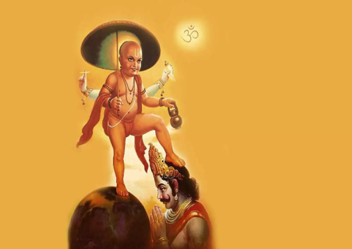 ಇದನ್ನು ಮೊದಲೇ ಅರಿತಿದ್ದ ಶ್ರೀವಿಷ್ಣು ವಾಮನನ ವೇಷದಲ್ಲಿ ಬಂದು, ತನ್ನ ಮೂರು ಹೆಜ್ಜೆಗೆ ಸಮವಾದ ಜಾಗ ದಾನ ಬೇಕೆಂದು ಕೇಳಿದ. ಅದಕ್ಕೆ ನಕ್ಕ ಬಲಿ, ಸರಿ ಅಷ್ಟೇ ಅಲ್ಲವೇ, ತೆಗೆದುಕೋ ಎಂದ. ವಾಮನ ಬೃಹದಾಕಾರವಾಗಿ ಬೆಳೆದು, ಸ್ವರ್ಗ ಲೋಕ, ಭೂ ಲೋಕ ಮತ್ತು ಪಾತಾಳ ಲೋಕಕ್ಕೆ ಹೆಜ್ಜೆ ಇಟ್ಟು, ಮೂರು ಲೋಕವನ್ನು ತನ್ನ ಅಧೀನಕ್ಕೆ ತೆಗೆದುಕೊಂಡ. ವಿಷ್ಣುವಿಗೆ ಭೂದಾನ ಮಾಡಿದ ದಿನವಾಗಿ, ಬಲಿ ಪಾಡ್ಯಮಿ ಆಚರಿಸಲಾಗುತ್ತದೆ.