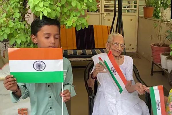 ಪ್ರಧಾನ ಮಂತ್ರಿ ನರೇಂದ್ರ ಮೋದಿಯವರ ತಾಯಿ ಹೀರಾಬಾ ಮೋದಿಯವರು ತನ್ನ ಮನೆಯಲ್ಲಿ ಮಕ್ಕಳಿಗೆ ರಾಷ್ಟ್ರ ಧ್ವಜವನ್ನು ಹಂಚಿ ಹರ್ ಘರ್ ತಿರಂಗಾ ಅಭಿಯಾನಕ್ಕೆ ಚಾಲನೆ ನೀಡಿದ್ದಾರೆ.