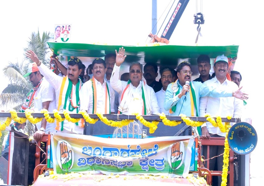ಕೋಲಾರದ ಬಂಗಾಪೇಟೆ ಯಲ್ಲಿ ಸಿಎಂ ಸಿದ್ದರಾಮಯ್ಯ ಕಾಂಗ್ರೆಸ್ ಅಭ್ಯರ್ಥಿ ಗೌತಮ್ ಪರವಾಗಿ ಮತಯಾಚನೆ ನಡೆಸಿ ಬಂಗಾರಪೇಟೆ ನಗರದ ಮುಖ್ಯ ರಸ್ತೆಯ ಸುಮಾರು ಎರಡು ಕಿಲೋಮೀಟರ್ ಗೂ ಅಧಿಕ ದೂರ ರೋಡ್ ಶೋನಲ್ಲಿ ಭಾಗಿಯಾಗಿದ್ದರು , ಬಿರು ಬಿಸಿಲಿನ ನಡುವೆಯೂ ರೋಡ್ ಶೋ ನಲ್ಲಿ ಸಾವಿರಾರುಜನ ಬಾಗಿಯಾಗಿಯಾಗಿದ್ದರು , ಇನ್ನು ಸಿಎಂ ಆಗಮನದ ಹಿನ್ನೆಲೆ ಸರ್ಕಾರಿ ಆಸ್ಪತ್ರೆ ವೃತ್ತದಲ್ಲಿ ಬೃಹತ್ ಸೇಬಿನ ಹಾರವನ್ನು ಸಮರ್ಪಿಸಲಾಯಿತು , ಸಿಎಂ ರೋಡ್ ಶೋ ವಾಹನ ಮುಂದೆ ಸಾಗುತ್ತಿದ್ದಂತೆ ಸೇಬಿನ ಹಾರಕ್ಕೆ ಮುಗಿಬಿದ್ದ ಜನರು ಕೆಲವೇ ಕ್ಷಣಗಳಲ್ಲಿ ಸೇಬಿನ ಹಾರವನ್ನು ನಾ ಮುಂದು ತಾ ಮುಂದು ಎಂದು ಖಾಲಿಮಾಡಿದರು.