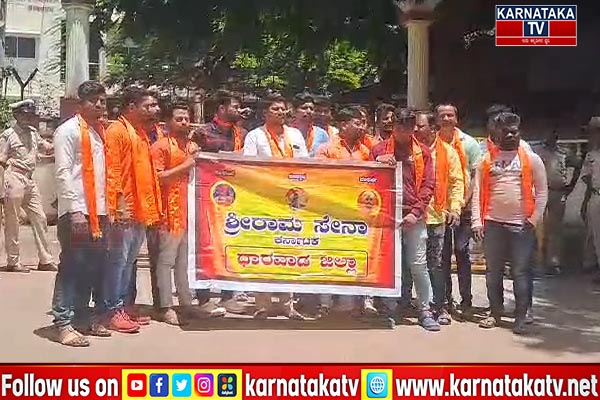 ಧಾರವಾಡ: ಸೌಜನ್ಯ ಪ್ರಕರಣದಲ್ಲಿ ಮರು ತನಿಖೆ ನಡೆಸಿ, ಅತ್ಯಾಚಾರಿಗಳಿಗೆ ಕಠಿಣ ಶಿಕ್ಷೆ ವಿಧಿಸಬೇಕೆಂದು ಆಗೃಹಿಸಿ ಇಂದು ಧಾರವಾಡದಲ್ಲಿ ಶ್ರೀರಾಮಸೇನೆ ಕಾರ್ಯಕರ್ತರು ಪ್ರತಿಭಟನೆ ನಡೆಸಿದ್ರು.