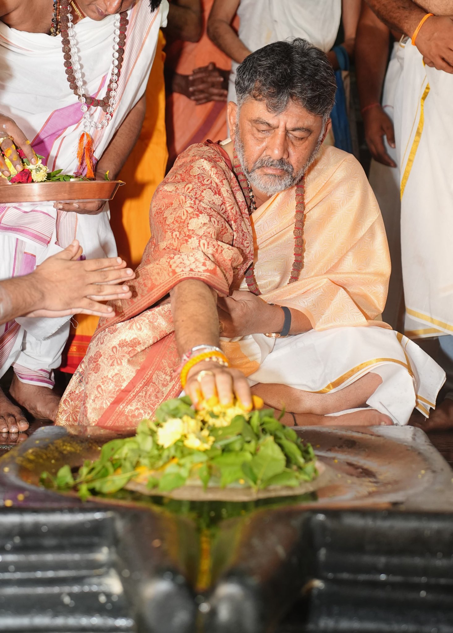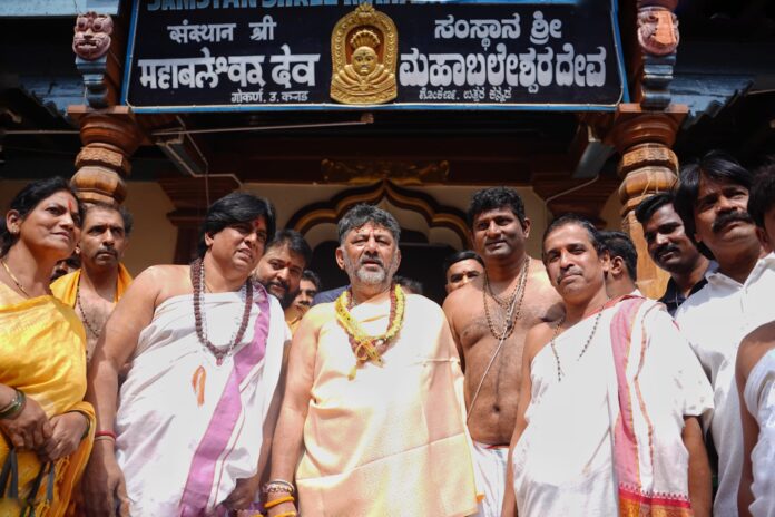 ಹೀಗಾಗಿ ಡಿಕೆಶಿ ತಮ್ಮ ಇಷ್ಟಾರ್ಥ ಸಿದ್ಧಿಗಾಗಿ ಉತ್ತರ ಕನ್ನಡ ಜಿಲ್ಲೆಯ ಗೋಕರ್ಣದ ಶ್ರೀ ಮಹಾಬಲೇಶ್ವರ ದೇವಸ್ಥಾನಕ್ಕೆ ಭೇಟಿ ನೀಡಿದ್ದಾರೆ. ದೇವರ ದರ್ಶನ ಪಡೆದು ಆತ್ಮಲಿಂಗದ ವಿಶೇಷ ಪೂಜೆ ಸಲ್ಲಿಸಿ ನಾಡಿನ ಒಳಿತಿಗಾಗಿ ಪ್ರಾರ್ಥನೆ ಸಲ್ಲಿಸಿದ್ದಾರೆ.