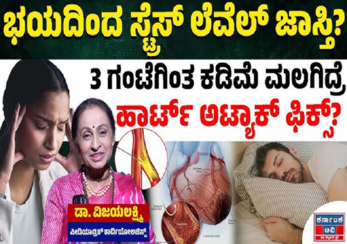 ಅಲ್ಲದೇ, ಸೆಲ್ ಫೋನ್, ದೂರದರ್ಶನ ಎಲ್ಲದಕ್ಕೂ ಹೆಚ್ಚು ಸಮಯ ನೀಡಿ, ನಿದ್ರೆ ಕಡಿಮೆ ಮಾಡುತ್ತಿದ್ದಾರೆ. ಇದೇ ನಿದ್ರಾಹೀನತೆಯೇ ಹೃದಯಾಘಾತಕ್ಕೆ ಕಾರಣ ಅಂತಾರೆ ವೈದ್ಯರು. 1 ಕಡೆ 3 ತಾಸು ಕುಳಿತೂ, 3 ತಾಸಿಗೂ ಕಡಿಮೆ ನಿದ್ರಿಸಿದರೂ ಹೃದಯಾಘಾತ ಬರುತ್ತೆ ಅಂತಾರೆ ವೈದ್ಯರು. ಸಂಪೂರ್ಣ ಮಾಹಿತಿಗಾಗಿ ವೀಡಿಯೋ ನೋಡಿ.