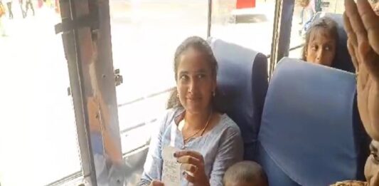 ಕೋಲಾರದಲ್ಲಿ ಶಕ್ತಿ ಯೋಜನೆಗೆ ಭೈರತಿ ಸುರೇಶ್ರಿಂದ ಚಾಲನೆ: ಮೊದಲ ಉಚಿತ ಬಸ್ ಟಿಕೇಟ್ ಪಡೆದ ರಮಾಮಣಿ