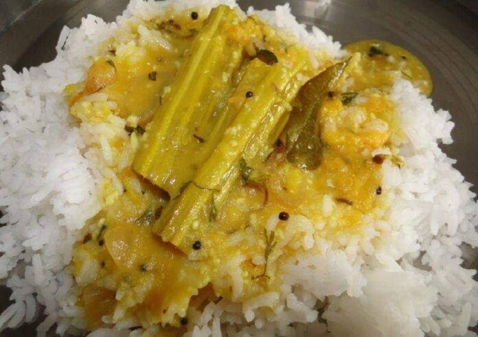 ಬೇಕಾಗುವ ಸಾಮಗ್ರಿ: 2 ನುಗ್ಗೇಕಾಯಿ, ಅರ್ಧ ಕಪ್ ತೊಗರಿ ಬೇಳೆ, ಎರಡು ಹಸಿ ಮೆಣಸು, ಕೊಂಚ ಅರಿಶಿನ, ಸಾಸಿವೆ, ಹಿಂಗು, 4 ಎಸಳು ಸಣ್ಣಗೆ ಕತ್ತರಿಸಿದ ಬೆಳ್ಳುಳ್ಳಿ, ನಾಲ್ಕು ಸ್ಪೂನ್ ಎಣ್ಣೆ, ಅರ್ಧ ಸ್ಪೂನ್ ಖಾರದ ಪುಡಿ, ಒಂದು ಸ್ಪೂನ್ ಧನಿಯಾ ಪುಡಿ, 2 ಸಣ್ಣಗೆ ಹೆಚ್ಚಿದ ಟೊಮೆಟೋ, ಕೊತ್ತೊಂಬರಿ ಸೊಪ್ಪು, ಬೆಲ್ಲ, ಅಗತ್ಯಕ್ಕೆ ತಕ್ಕಷ್ಟು ಉಪ್ಪು.