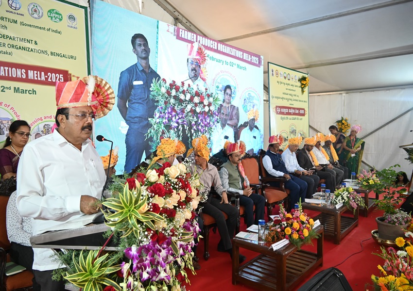ಬೆಂಗಳೂರು ತೋಟಗಾರಿಕಾ ಮಹಾವಿದ್ಯಾಲಯದ ಆವರಣದಲ್ಲಿ ಜಲಾನಯನ ಇಲಾಖೆ ಸಹಯೋಗದೊಂದಿಗೆ ಏರ್ಪಡಿಸಲಾಗಿದ್ದ ಕೃಷಿ ಉತ್ಪಾದಕ ಸಂಸ್ಥೆಗಳ ಮೇಳ ಉದ್ಘಾಟಿಸಿ ಸಚಿವರು ಮಾತನಾಡಿದರು.