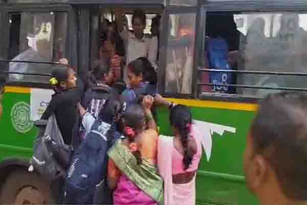 ಹೌದು.. ಹುಬ್ಬಳ್ಳಿಯ ಚನ್ನಮ್ಮ ವೃತ್ತದ ಬಳಿಯಲ್ಲಿ ನೇಕಾರನಗರದ ಬಸ್ಸಿನಲ್ಲಿ ಇಂತಹದೊಂದು ಘಟನೆ ಸಂಭವಿಸಿದ್ದು, ಮಹಿಳಾ ವಿದ್ಯಾರ್ಥಿಗಳು ಹಾಗೂ ಸಾರ್ವಜನಿಕರು ಬಸ್ಸಿನಲ್ಲಿ ಪ್ರಯಾಣ ಮಾಡಲು ಸರ್ಕಸ್ ಮಾಡುತ್ತಿರುವುದು ನಿಜಕ್ಕೂ ವಿಪರ್ಯಾಸಕರ ಸಂಗತಿಯಾಗಿದೆ. ಇಲ್ಲಿ ಅಷ್ಟೇ ಅಲ್ಲದೆ ರಾಜ್ಯದ ನಾನಾ ಕಡೆ ಬಸ್ ಗಳ ಬೇಡಿಕೆ ಜಾಸ್ತಿ ಇದೆ. ವಿದ್ಯಾರ್ಥಿಗಳು ಶಾಲಾ ಕಾಲೇಜುಗಳಿಗೆ ಹೋಗಲು ಪರದಾಡುತಿದ್ದಾರೆ.