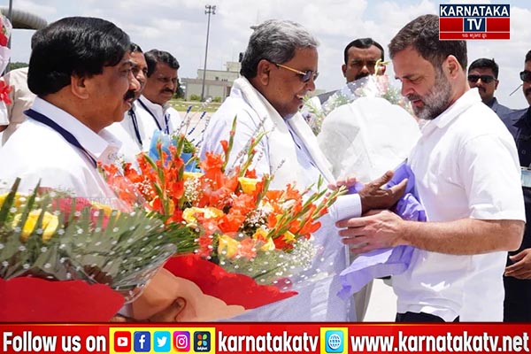 ಈ ಸಂದರ್ಭದಲ್ಲಿ ರಾಜ್ಯ ಮುಖ್ಯಮಂತ್ರಿಗಳಾದ ಮಾನ್ಯ ಸಿದ್ದರಾಮಯ್ಯವನರು ರಾಹುಲ್ ಗಾಂಧಿಯನ್ನು ಹೂಗುಚ್ಚ ನೀಡಿ ಸ್ವಾಗತಿಸಿದರು .