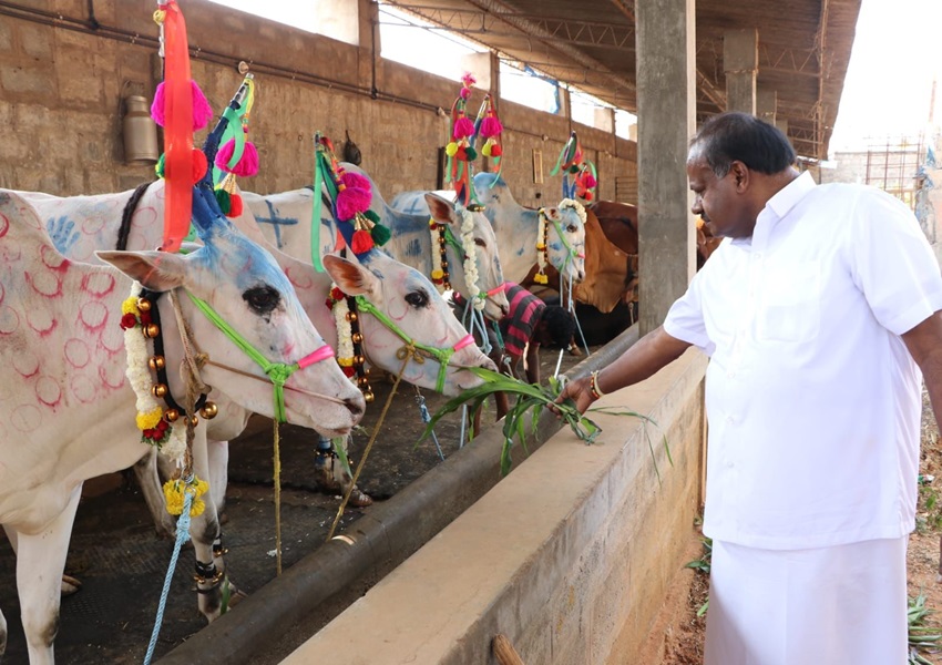 ಬಿಡದಿಯ ತೋಟದ ಮನೆಯಲ್ಲಿ ಕುಮಾರಸ್ವಾಮಿ, ಅನಿತಾ ಕುಮಾರಸ್ವಾಮಿ, ಅವರ ಮಗ ನಿಖಿಲ್ ಕುಮಾರ್ ಸ್ವಾಮಿ, ರೇವತಿ ನಿಖಿಲ್, ಪುತ್ರ ಅವ್ಯಾನ್ ದೇವ್ ಇವರೆಲ್ಲರೂ ಸೇರಿ, ಬಿಡದಿಯ ಮನೆಯಲ್ಲಿ ಸಂಕ್ರಾಂತಿ ಹಬ್ಬ ಸೆಲೆಬ್ರೇಟ್ ಮಾಡಿದ್ದಾರೆ. ಪುರೋಹಿತರ ಕಡೆಯಿಂದ ದೇವರಿಗೆ ವಿಶೇಷ ಪೂಜೆ ಮಾಡಿಸಿ, ಹಸುವಿಗೆ, ಮೇಕೆಗಳಿಗೆ ಆಹಾರ ನೀಡಿದ್ದಾರೆ.