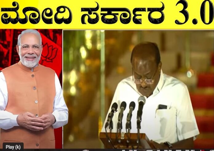 ದೆಹಲಿಯ ರಾಷ್ಟ್ರಪತಿ ಭವನದಲ್ಲಿ ನಡೆದ ಸಮಾರಂಭದಲ್ಲಿ ಪ್ರಧಾನಿ ಮೋದಿ ಸೇರಿ ಹಲವು ಬಿಜೆಪಿ ನಾಯಕರು, ವಿದೇಶಿ ಅಧ್ಯಕ್ಷರು, ಸೆಲೆಬ್ರಿಟಿಗಳ ಸಮ್ಮುಖದಲ್ಲಿ ಕುಮಾರಸ್ವಾಮಿ ಕೇಂದ್ರ ಸಚಿವರಾಗಿ ಪ್ರಮಾಣವಚನ ಸ್ವೀಕರಿಸಿದ್ದಾರೆ.
