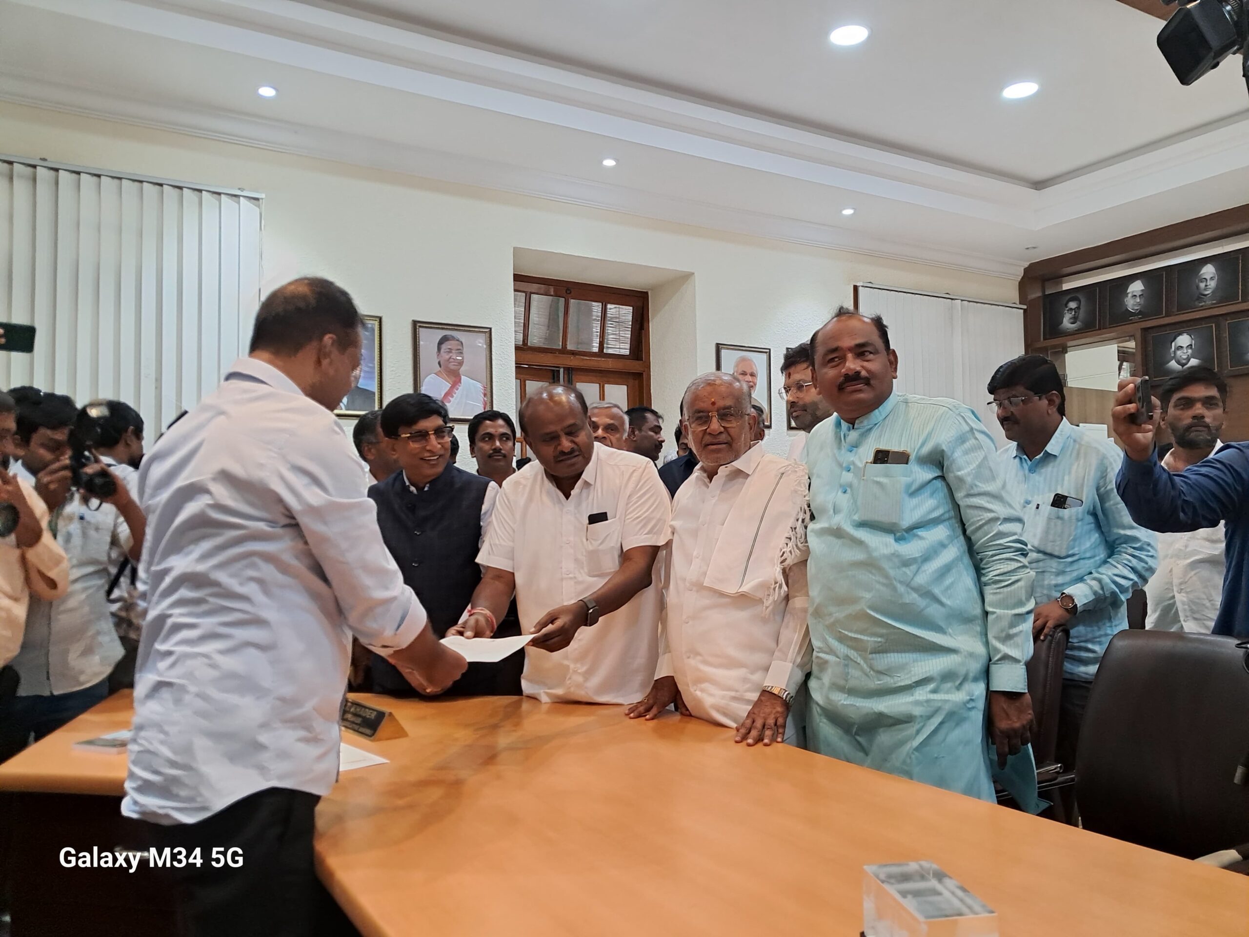 ಮಾಜಿ ಮುಖ್ಯಮಂತ್ರಿಗಳಾದ ಹೆಚ್.ಡಿ.ಕುಮಾರಸ್ವಾಮಿ ಹಾಗೂ ಬಸವರಾಜ ಬೊಮ್ಮಾಯಿ ಅವರು ಶಾಸಕ ಸ್ಥಾನಕ್ಕೆ ರಾಜೀನಾಮೆ ಸಲ್ಲಿಸಿದ್ದಾರೆ. ವಿಧಾನಸೌಧದಲ್ಲಿ ಸ್ಪೀಕರ್ ಯು.ಟಿ.ಖಾದವ್ ಅವರನ್ನು ಭೇಟಿಯಾಗಿ ರಾಜೀನಾಮೆ ಪತ್ರ ಸಲ್ಲಿಸಿದರು.