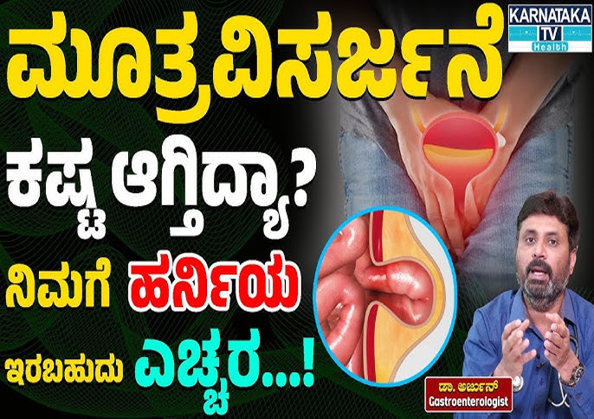 ಅಲ್ಲದೇ, ಮೂತ್ರ, ಮಲ ವಿಸರ್ಜಿಸುವಾಗ ಹೆಚ್ಚು ಭಾರ ಹಾಕಬಾರದು. ಚೆನ್ನಾಗಿ ನೀರಿನ ಸೇವನೆ ಮಾಡಿದ್ದಲ್ಲಿ, ಮಲ ಮೂರ್ತ ವಿಸರ್ಜನೆಗೆ ಯಾವುದೇ ತೊಂದರೆಯಾಗುವುದಿಲ್ಲ. ಹರ್ನಿಯಾ ಬಗ್ಗೆ ಸಂಪೂರ್ಣ ಮಾಹಿತಿಗಾಗಿ ವೀಡಿಯೋ ನೋಡಿ.