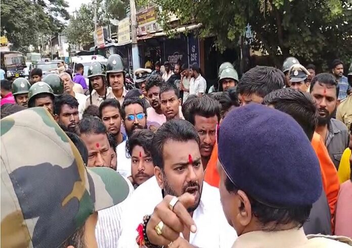 ಕಸಾಯಿಖಾನೆಗಳ ವಿರುದ್ಧ ರೊಚ್ಚಿಗೆದ್ದ ಹಿಂದೂ ಸಂಘಟನೆ: ಪೊಲೀಸರು- ಹೋರಾಟಗಾರರ ನಡುವೆ ವಾಗ್ವಾದ