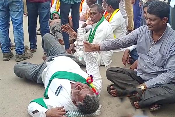ರಸ್ತೆಯಲ್ಲಿ ಅಡ್ಡ ಮಲಗಿ ಪ್ರತಿಭಟಿಸಿದ ಕನ್ನಡಪರ ಸಂಘಟನೆಗಳು..!