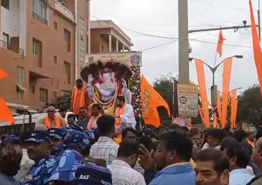 ಹುಬ್ಬಳ್ಳಿಯ ರಾಣಿ ಚನ್ನಮ್ಮ ಮೈದಾನದಲ್ಲಿ ಪ್ರತಿಷ್ಟಾಪನೆಗೊಂಡಿರುವ ಗಣಪತಿ ವಿಸರ್ಜನೆಗೊಳ್ಳಲಿದ್ದು, ಈ ನಿಟ್ಟಿನಲ್ಲಿ ಸಂಭ್ರಮ ಮನೆ ಮಾಡಿದೆ. ವಾಣಿಜ್ಯನಗರಿಯ ಹೃದಯ ಭಾಗ ಸಂಪೂರ್ಣ ಕೇಸರಿ ಬಾವುಟದಿಂದ ಕಂಗೊಳಿಸುತ್ತಿರುವುದು ನಿಜಕ್ಕೂ ಕಣ್ಮನ ಸೆಳೆಯುತ್ತಿದೆ.