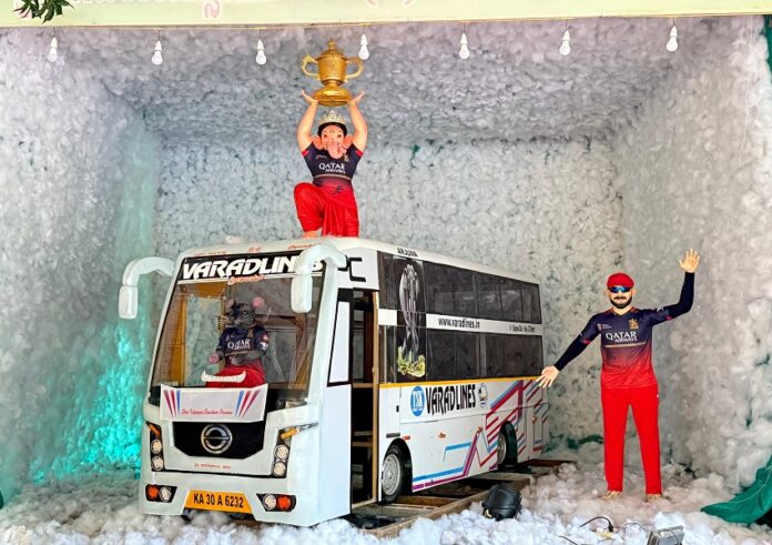 ಹೌದು, ಗಣೇಶ ಹಬ್ಬ ಬಂತ್ತು ಅಂದರೆ ಯುವಕರಲ್ಲಿ ಎಲ್ಲಿಲ್ಲದ ಸಂಭ್ರಮ. ಅದರಲ್ಲೂ ವಿಭಿನ್ನ ಗಣೇಶ ಕೂರಿಸಿ ಎಲ್ಲರ ಗಮನ ಸೆಳೆಯಬೇಕು ಎನ್ನುವುದು ಕಾಮನ್. ಹಾಗಾಗಿ ಹುಬ್ಬಳ್ಳಿ ತಾಲೂಕಿನ ಕೊಟಗೊಂಡಹುಣಸಿ ಗ್ರಾಮದಲ್ಲಿ ಶ್ರೀಸಾಯಿ ಯುವಕರ ಸ್ವಸಹಾಯ ಸಂಘ ಕೊಟಗೊಂಡಹುಣಸಿ ವತಿಯಿಂದ ಆರ್ಸಿಬಿ ಗೆದ್ದ ಕಪ್ ಹಿಡಿದ ಮೂರ್ತಿ ಕೂಡಿಸಿ ಗಣೇಶನ ಭಕ್ತಿಯ ಜೊತೆಗೆ ಆರ್ ಸಿಬಿ ತಂಡದ ಅಭಿಮಾನ ಮೆರೆದಿದೆ.