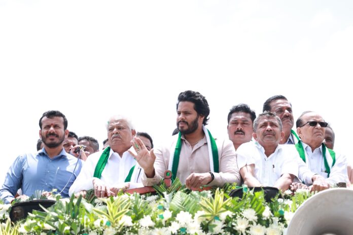 ರಾಜ್ಯದಲ್ಲಿ ಬಿಡದಿ ಟೌನ್‌ಶಿಪ್‌ ಜಟಾಪಟಿ ತಾರಕಕ್ಕೇರಿದೆ. ಕಾಂಗ್ರೆಸ್‌-ಜೆಡಿಎಸ್‌ ನಾಯಕರ ನಡುವಿನ ಟಾಕ್‌ ವಾರ್‌ ಜೋರಾಗಿದೆ. ಈ ಬಾರಿ ಡಿ.ಕೆ. ಶಿವಕುಮಾರ್‌ ಆರೋಪಗಳಿಗೆಲ್ಲಾ, ನಿಖಿಲ್‌ ಕುಮಾರಸ್ವಾಮಿ ಖಡಕ್‌ ಟಾಂಗ್‌ ಕೊಟ್ಟಿದ್ದಾರೆ. ಯಶವಂತಪುರ ವಿಧಾನಸಭಾ ಕ್ಷೇತ್ರದಲ್ಲಿ ನಡೆದ ಜನರೊಂದಿಗೆ ಜನತಾದಳ ಕಾರ್ಯಕ್ರದಲ್ಲಿ ನಿಖಿಲ್‌ ಭಾಗಿಯಾಗಿದ್ರು. ಭಾಷಣದಲ್ಲಿ ಡಿಕೆಶಿ ವಿರುದ್ಧ ಗುಡುಗಿದ್ದಾರೆ.