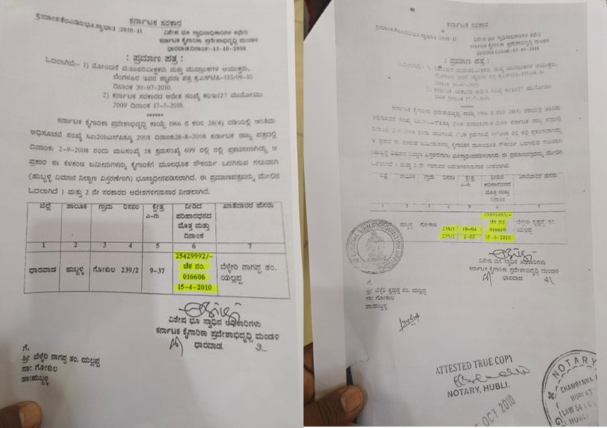 ಬಸವರಾಾಜ ಕೊರವರ ಎಂಬ ಸಾಮಾಜಿಕ ಹೋರಾಟಗಾರ, ಈ ಅಕ್ರಮವನ್ನು ಬಯಲಿಗೆ ಎಳೆದಿದ್ದಾರೆ. ಹುಬ್ಬಳ್ಳಿ ಮೂಲದ ನಾಗಪ್ಪ ಬೆಳ್ಳೆರಿ ಎಂಬ ರೈತ, ಬದುಕಿದ್ದಾಗ 9 ಎಕರೆ 37 ಗುಂಟೆಗೆ 2010 ರಲ್ಲಿ ಪರಿಹಾರ ಪಡೆದುಕ್ಕೊಂಡಿದ್ದರು. ಆದರೆ ಅದೇ ದಾಖಲಾತಿಯನ್ನು ಬಳಸಿಕೊಂಡ ಅಧಿಕಾರಿಗಳು, 2 ಕೋಟಿ 45 ಲಕ್ಷದ 29 ಸಾವಿರದ 992 ಹಣವನ್ನ ಸತ್ತವರ ಹೆಸರಲ್ಲಿ ಲೂಟಿ ಮಾಡಿದ್ದಾರೆ.
