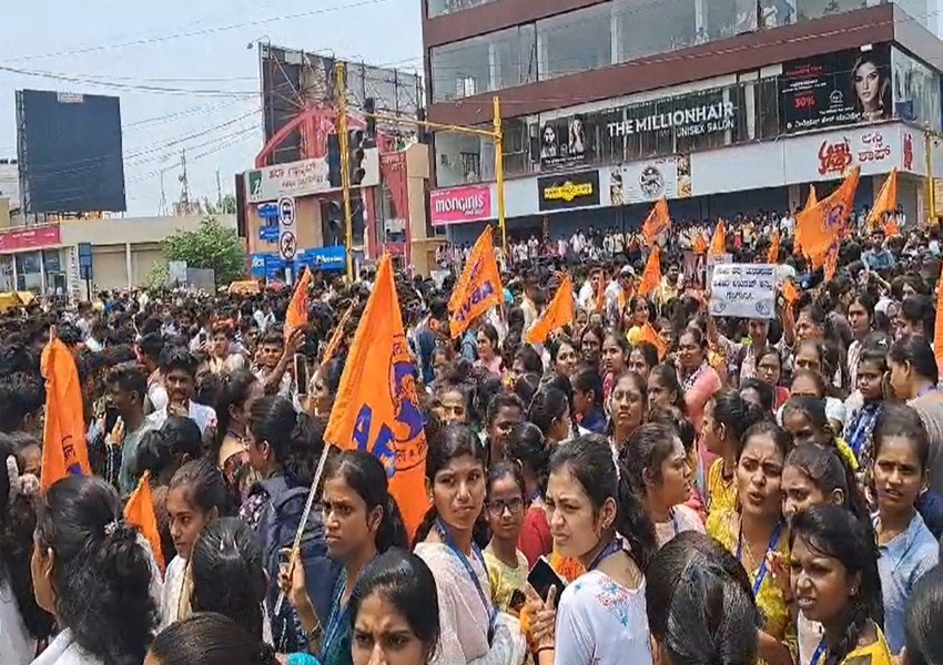 ಹುಬ್ಬಳ್ಳಿಯಲ್ಲಿ ನೇಹಾ ಹ* ವಿರೋಧಿಸಿ ಎಬಿವಿಪಿಯಿಂದ ರಸ್ತೆ ತಡೆದು ಪ್ರತಿಭಟನೆ..