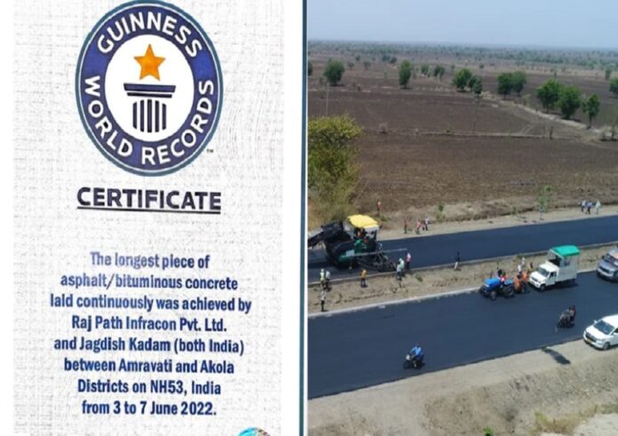 ರಾಷ್ಟ್ರೀಯ ಹೆದ್ದಾರಿ ಪ್ರಾಧಿಕಾರದ (ಎನ್ಎಚ್ಎಐ) ಸಲಹೆಗಾರರು ಮತ್ತು ರಿಯಾಯಿತಿದಾರರಾದ ರಾಜಪಥ ಇನ್ಫ್ರಾಕಾನ್ ಪ್ರೈವೇಟ್ ಲಿಮಿಟೆಡ್ ಮತ್ತು ಜಗದೀಶ್ ಕದಮ್ ಅವರು ರಾಷ್ಟ್ರೀಯ ಹೆದ್ದಾರಿ 53 ರಲ್ಲಿ ಒಂದೇ ಲೇನ್ನಲ್ಲಿ 75 ಕಿ.ಮೀ ನಿರಂತರ ಬಿಟುಮಿನಸ್ ಕಾಂಕ್ರೀಟ್ ನಿರ್ಮಿಸುವ ಮೂಲಕ ಈ ದಾಖಲೆಯನ್ನು ಸಾಧಿಸಿದ್ದಾರೆ.