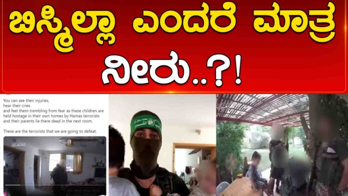 ಇಸ್ರೇಲ್ ಮೇಲೆ ದಾಳಿ ಮಾಡಿ ಹಸುಗೂಸುಗಳು ಸೇರಿ ಅನೇಕ ಮಕ್ಕಳನ್ನು ಸೆರೆಯಾಗಿಸಿದ ವೀಡಿಯೋ ಒಂದನ್ನು ಇಸ್ರೇಲ್ ಸೇನೆ ಬಿಡುಗಡೆ ಮಾಡಿದೆ. ಇದರಲ್ಲಿ 1 ಕೈಯಲ್ಲಿ ಹಸುಗೂಸು, ಮತ್ತೊಂದರಲ್ಲಿ ಎಕೆ 47 ಹಿಡಿದಿರುವ ಉಗ್ರರು ಪೈಶಾಚಿಕವಾಗಿ ವರ್ತಿಸುವುದು ಕಂಡುಬಂದಿದೆ. ಈ ವಿಡಿಯೋದ ಕೊನೆಯಲ್ಲಿ ಹಮಾಸ್ ಉಗ್ರನೊಬ್ಬ ಬಾಯಾರಿದ ಒಂದು ಮಗುವಿಗೆ ಕುಡಿಯಲು ನೀರು ಕೊಡುವ ಮುನ್ನ ‘ಬಿಸ್ಮಿಲ್ಲಾ’ ಎನ್ನುವಂತೆ ಹೇಳುತ್ತಾನೆ.