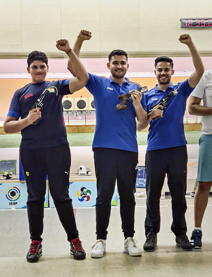 ಬುಧಾವಾರ ಕೊನೆಯ ದಿನ ಪುರುಷರ ರಾಪಿಡ್ ಪಿಸ್ತೂಲ್ ತಂಡದ ವಿಭಾಗದಲ್ಲಿ ಭಾರತದ ಅನಿಶ್ ಭಾನವಾಲಾ, ವಿಜಯ್ವೀರ್ ಸಿಂಗ್ ಮತ್ತು ಸಮೀರ್ ಬೆಳ್ಳಿ ಪದಕ ಗೆದ್ದು ಮಿಂಚಿದರು.