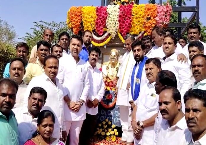 ದೇವನಹಳ್ಳಿ ತಾಲೂಕು ಕಚೇರಿಯ ಆವರಣದಲ್ಲಿರುವ ಅಂಬೇಡ್ಕರ್ ಪುತ್ಹಳಿಗೆ ಮಾಲಾರ್ಪಣೆ ಮಾಡಿದ ರಕ್ಷಾ ರಾಮಯ್ಯಗೆ ಸಚಿವ ಕೆ.ಹೆಚ್.ಮುನಿಯಪ್ಪ, ಬೈಯಪ್ಪ, ಅಧ್ಯಕ್ಷ ಶಾಂತಕುಮಾರ್ ಸಾಥ್ ನೀಡಿದರು.